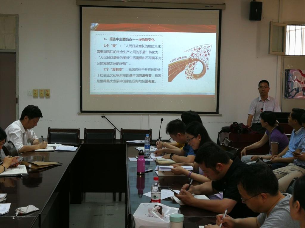 6月6日下午,计算机公司在雁塔校区行政楼会议室召开十九大精神和新党章宣讲会,计算机公司党委副书记陈伟伯做宣讲报告。