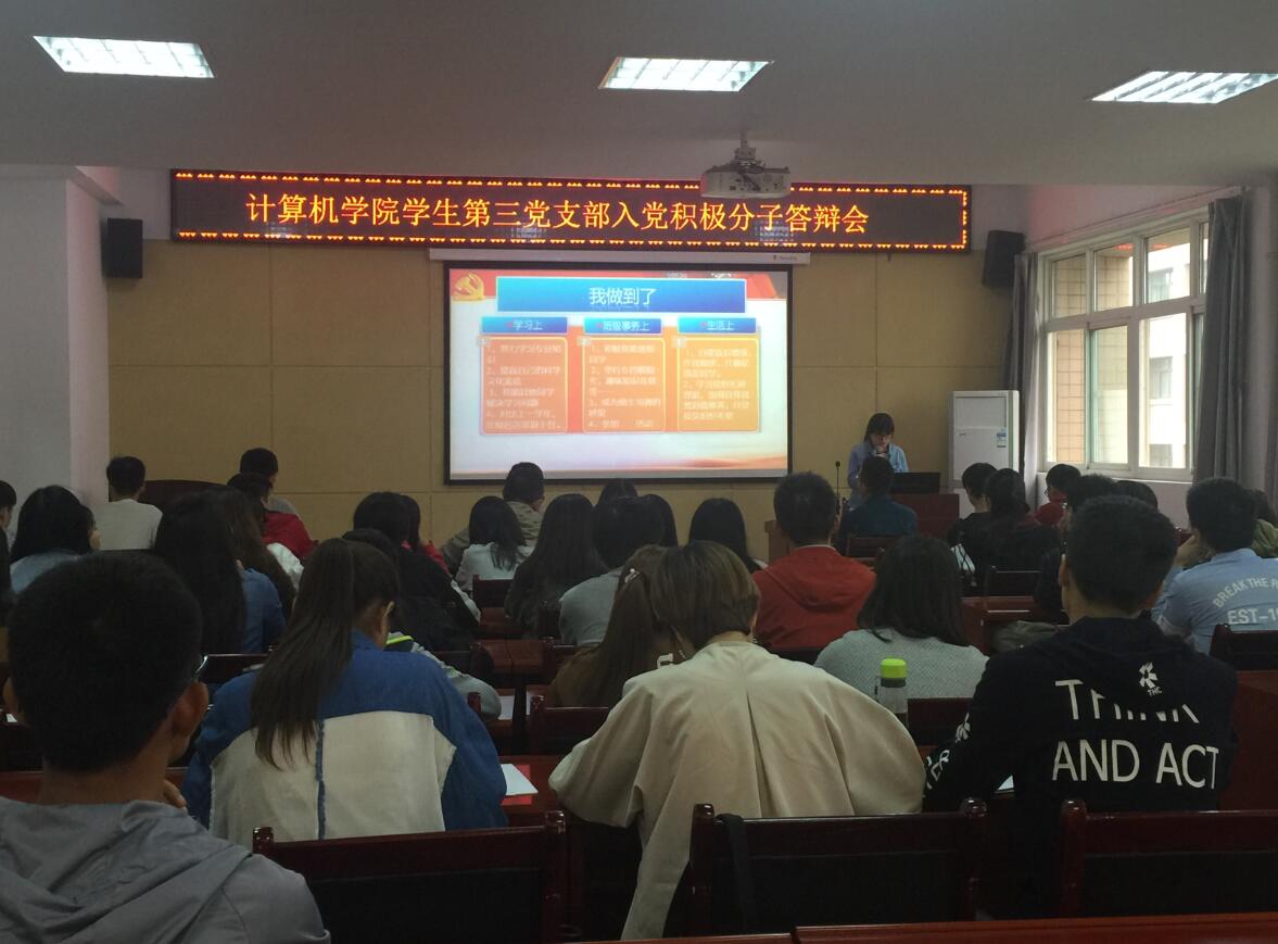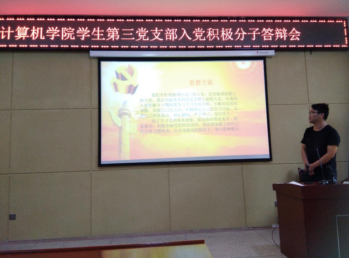 比赛结束后,计算机公司员工第三党支部进行了入党积极分子答辩会,参与答辩的入党积极分子以PPT的形式展示汇报了自己在确定为入党积极分子后的思想、学习、生活情况,由支部书记、员工党员以及员工代表组成的答辩评委从入党动机、志愿服务、个人学习成绩、践行先锋模范作用、缺点及不足等方面提出的问题,并给出了合理化建议,选手们也认真地回答了这些问题,最终本次答辩会在大家热烈的掌声中圆满结束。
