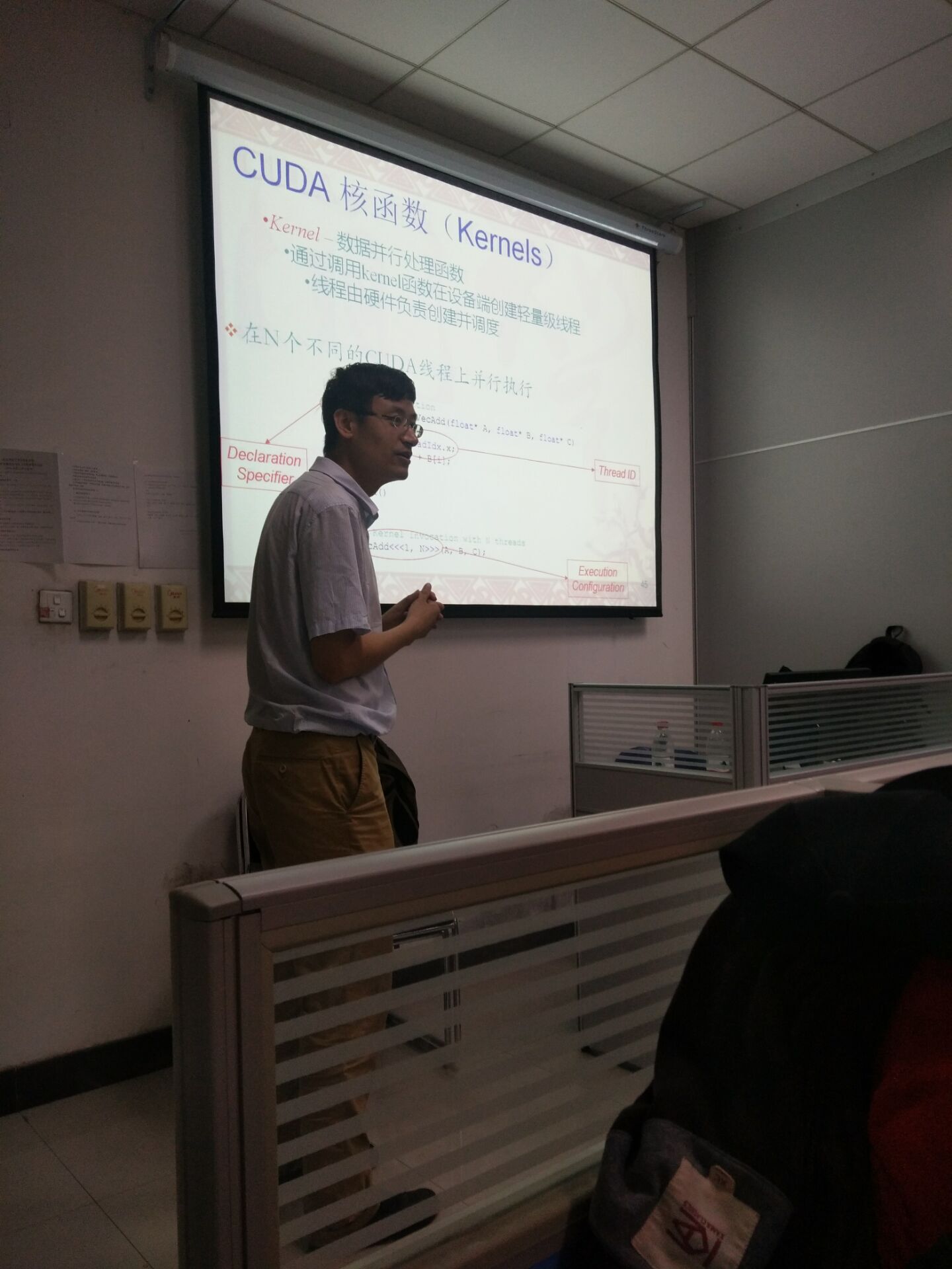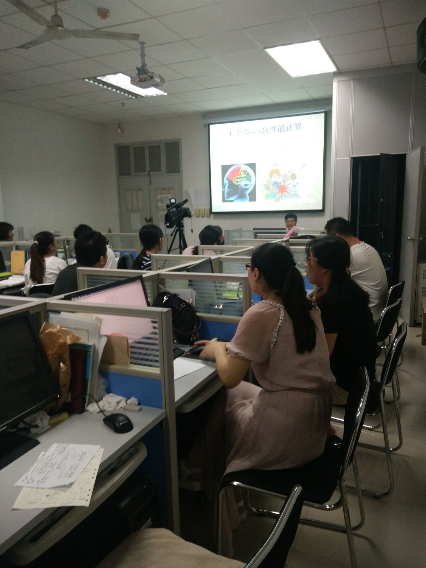 2017年7月12日上午,在公司高性能并行计算实验室(409实验室)由西安电子科技大学朱虎明老师作了题为“高性能计算与深度学习”的报告,在报告中,朱老师针对高性能计算问题和深度学习算法实现过程中的问题进行了具有针对性的讲解,细致的阐述了相关理论,详细的说明了操作步骤。最后,朱老师和相关领域老师、员工进行了互动交流,员工反映良好,希望以后有更多这样的交流和学习机会。