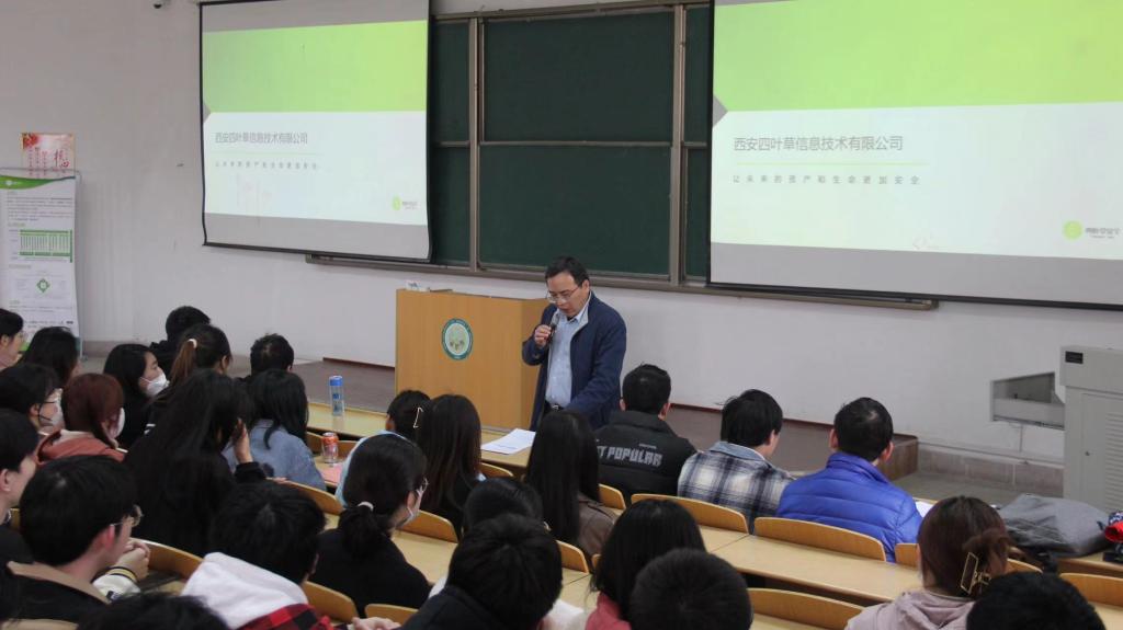 为进一步帮助员工了解网络安全知识、就业前景和行业发展趋势,3月22日下午,计算机公司在骊山校园9105教室举行校企交流暨学涯规划分享会,西安四叶草信息技术有限公司市场部总监孙宇等一行3人,2020级员工辅导员王浩,公司网络安全协会全体成员,2020级全体本科生参加会议。会议由党委副书记郭胜忠主持。