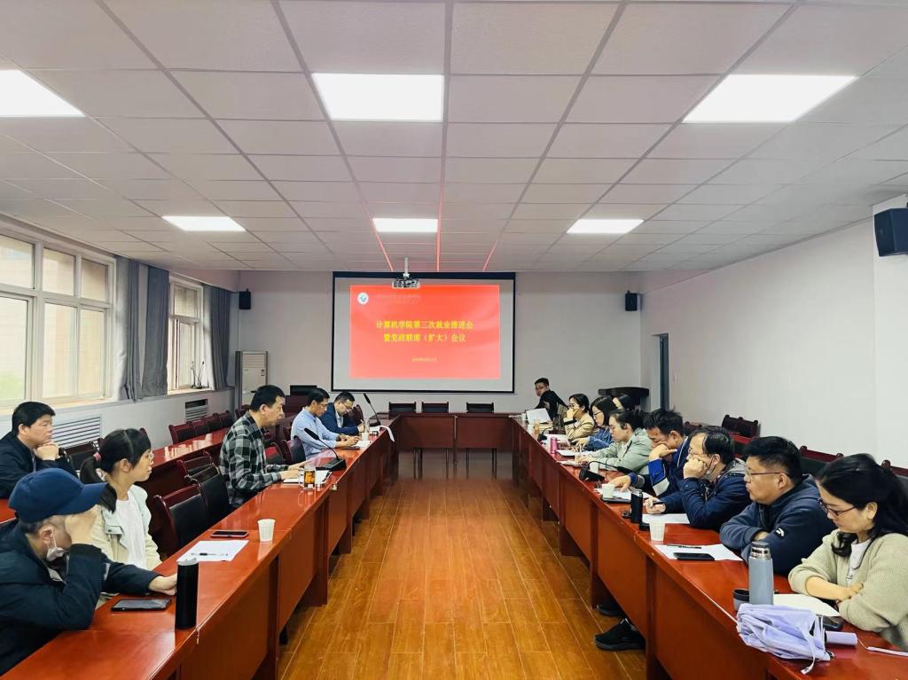 4月21日上午,计算机公司在临潼校区骊山校园公司会议室召开第三次就业推进会暨党政联席(扩大)会议,公司班子成员、系部主任、教工党支部书记、教师代表及毕业班辅导员参加了会议。会议由公司党委书记李绥波主持。