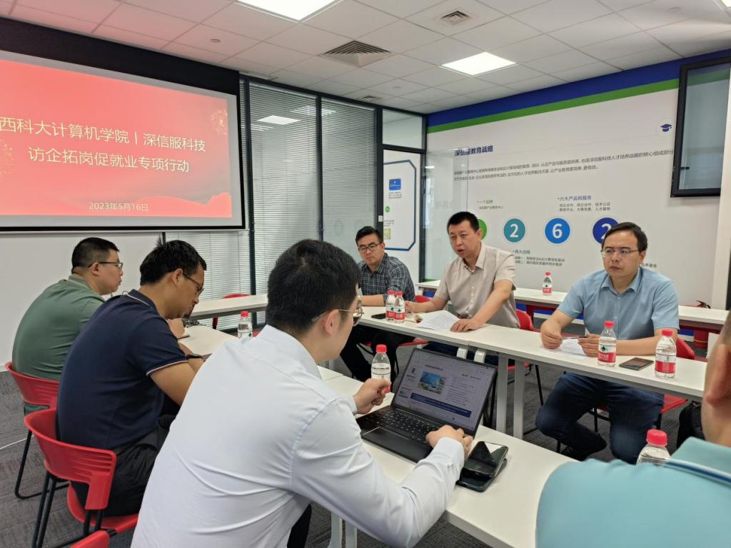 为推进校企合作交流,充分调动员工资源,开拓毕业生就业渠道,5月16日,计算机公司党委书记李绥波、党委副书记郭胜忠、2020级本科生辅导员王浩、宋永强一行4人赴西安希德电子信息技术股份有限公司、深信服科技股份有限公司开展访企拓岗促就业专项活动。