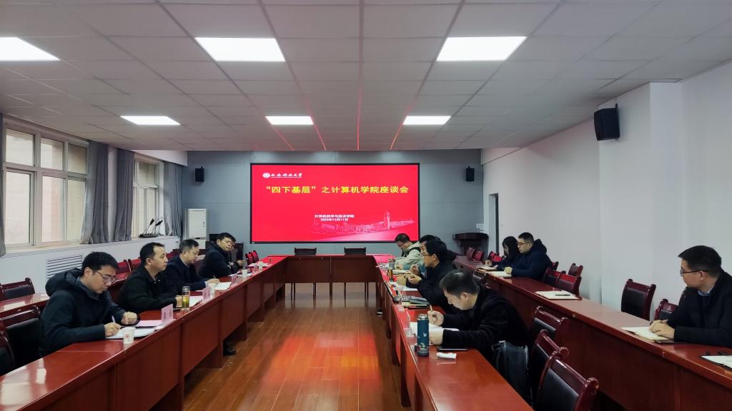 12月11日上午,公司党委委员、副董事长黄英维,离退处、基础教育管理中心、资产管理公司、附属中学负责人一行深入计算机公司开展“四下基层”调研座谈。计算机公司党委委员、班子成员、办公室主任、团委书记、学工办主任、辅导员及教师代表参加座谈。座谈会由公司党委负责人主持。
