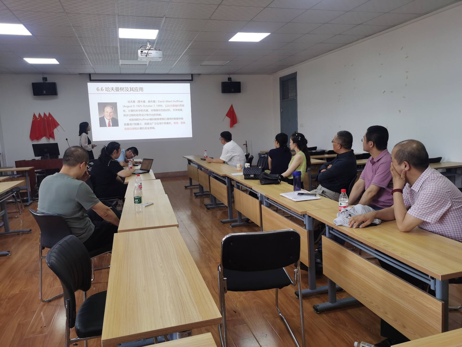 在汇报活动中,三位近5年入职的青年教师丛旭亚、尹慧平和张文超,分别选择形式语言与自动机的带空移动的不确定自动机与确定的自动机转化的章节、数据结构与算法的哈夫曼树的构造章节和深度学习课程的反向传播算法章节,进行生动的讲解,各位青年教师纷纷展示他们在教学过程中的创新方法和独特见解。