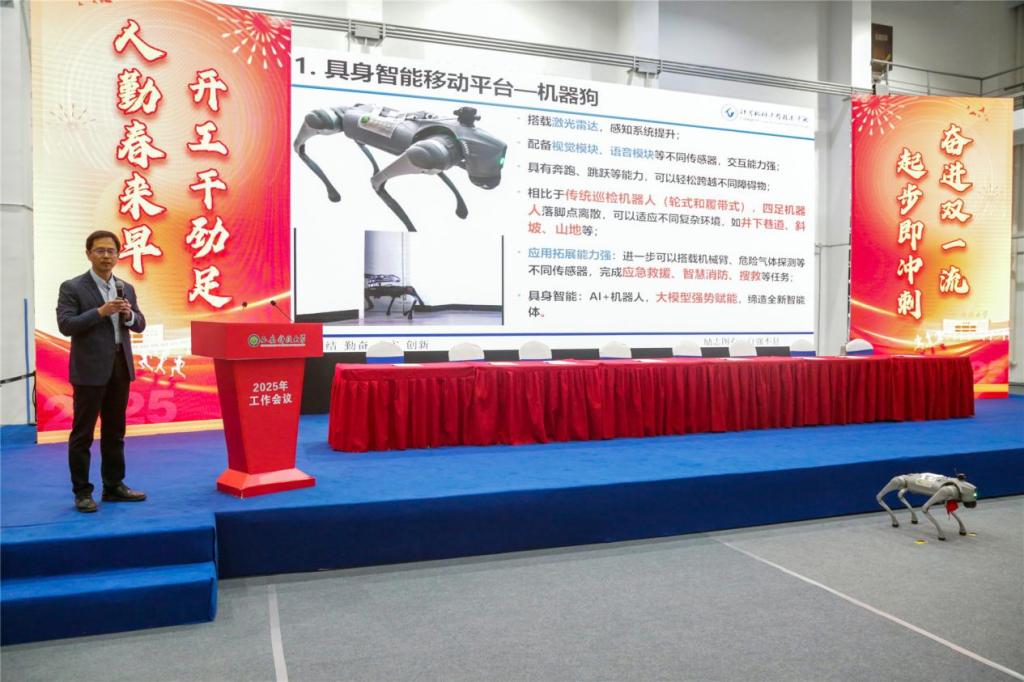 会上,于振华经理还向全体与会人员展示了“具身智能驱动的‘探-析-控’井下巡检全链路智能化装备”并在大会上作交流发言。