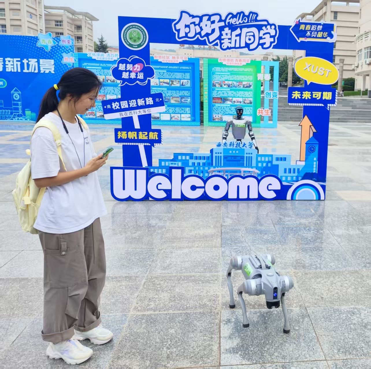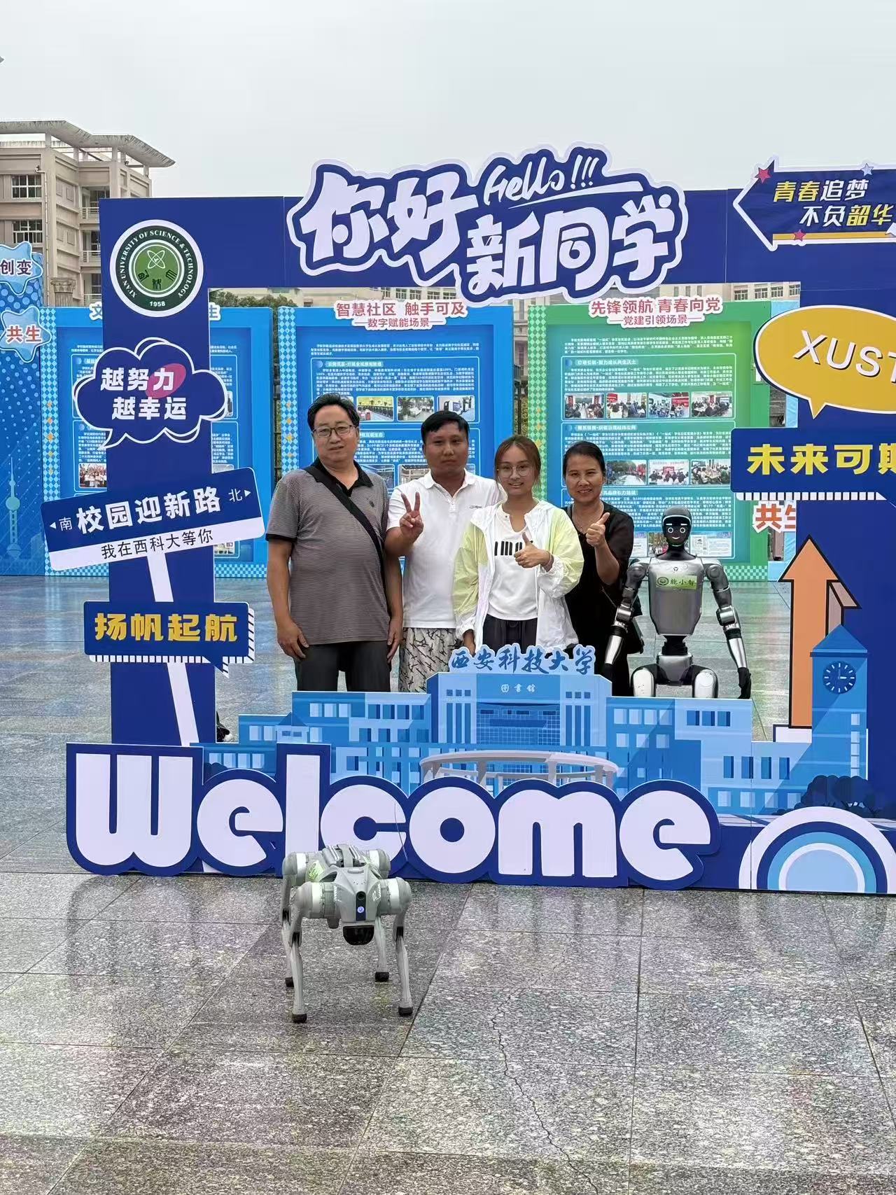 在公司迎新点,机器人“能小智”化身为贴心向导,向新生详细介绍报道注意事项,并参与校徽佩戴仪式。它以精准的动作,双手为学子奉上承载着公司精神与荣誉的校徽,传递着公司对新生的殷切期望。与此同时,机器狗“西小科”发挥自主导航、自动避障的优势,为新生引路,护送他们顺利抵达宿舍,让初来乍到的新生感受到家一般的温暖与便捷。