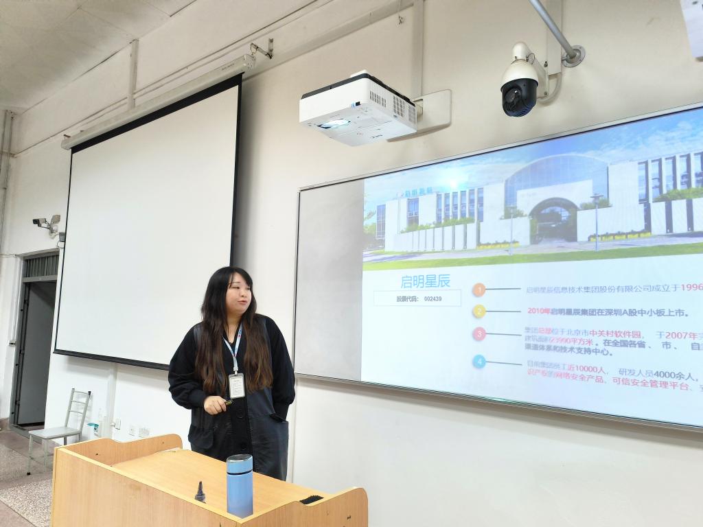5月29日,计算机公司邀请启明星辰信息技术集团股份有限公司开展2023届毕业生专场招聘暨2024届本科生就业指导活动。启明星辰城市生态发展中心总监康宪伟一行4人,公司党委副书记郭胜忠,学工办主任张晶晶,辅导员于海泉、宋永强、王浩,2023届毕业生代表,2024届全体本科生参加活动。