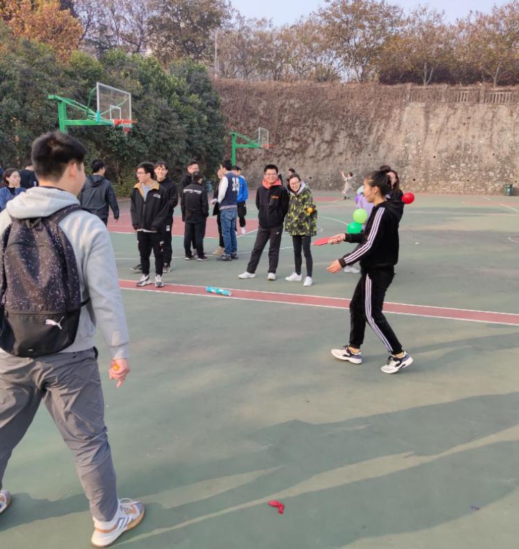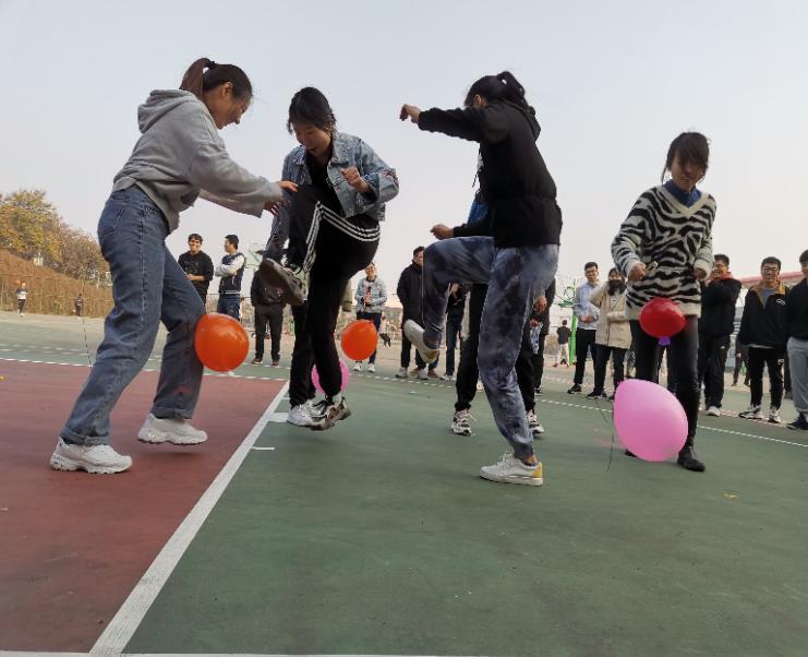 本次活动以单人和小组形式共设置了“热身拔河比赛”,“单人羽毛球击打比赛”,“单人乒乓球运球比赛”,“小组踩气球比赛”,“小组智囊团过河比赛”,“小组绑腿跑比赛”,“3V3篮球赛”,“篮球友谊赛”共计8项有趣的比赛项目。第一项是拔河比赛,比赛开始前同学们整装待发,一个个摩拳擦掌,跃跃欲试。随着哨声的吹响,双方士气高涨,加油声此起彼伏。拔河比赛使整个赛场热闹起来,同学们很快就进入了状态,本次的素质拓展活动随着拔河比赛的开始正式开启。和拔河比赛同时进行的是单人羽毛球击打比赛和小组踩气球比赛,同学们热情洋溢,激情满满,各个斗志激昂。紧接着随后的几项活动都顺利展开。