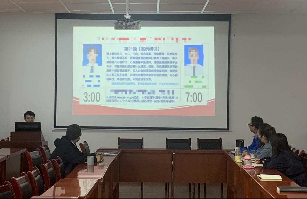 会上,于飞结合陕西省辅导员素质能力大赛参赛经验,从谈心谈话作答步骤、解题思路、备赛技巧、案例研讨等方面对辅导员素质能力大赛第三阶段谈心谈话环节进行了全面、细致的培训。与会人员还就辅导员素质能力大赛中存在的问题和个人困惑进行了交流。郭胜忠指出,本年度辅导员素质能力大赛中公司全体辅导员展现出较好的精神面貌,在第一阶段取得平均分全校第一的好成绩,希望全体辅导员能利用好辅导员素质能力大赛这一平台,以赛代练,以赛促训,突出技能,展现风采。