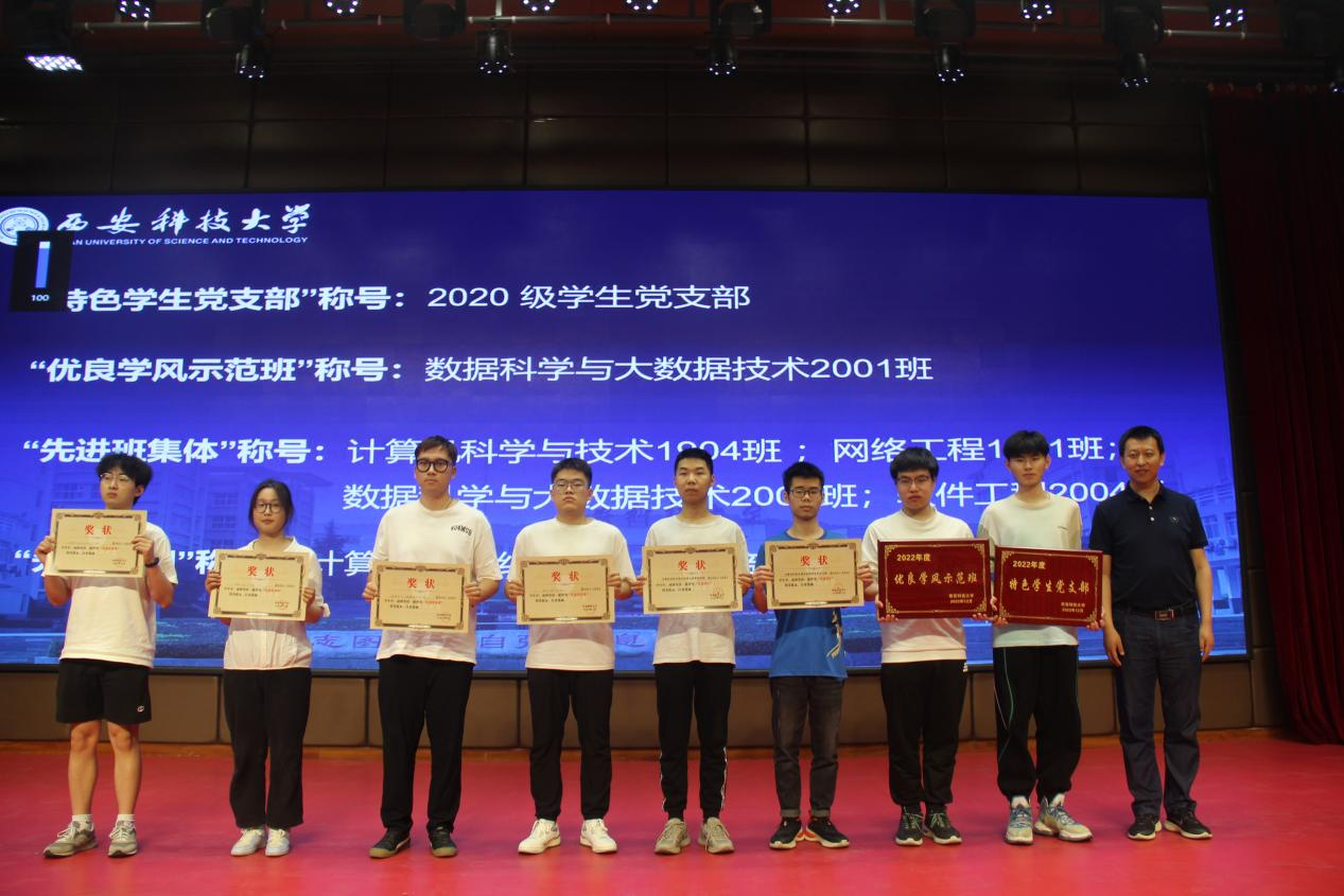 会上,金浩宣读了《关于表彰2021—2022学年员工先进集体、优秀个人的通报》《计算机公司关于2022年“青年大学习”网上主题团课学习情况评优结果的通报》《计算机公司关于表彰2021级英语四级考试先进班级的通报》《计算机公司关于表彰“一日生活制度”先进班级的通报》等表彰文件。并为获得“先进团支部”荣誉称号的3044永利集团有限公司1903团支部等9个团支部颁发了荣誉证书,学工办负责人为获得“党员先锋模范宿舍”“标兵宿舍”称号的宿舍颁发了奖状,辅导员老师们分别为获得“青年大学习优秀团支部”“英语四级考试先进班级”、一日生活制度“优秀早操班级”“优秀晚自习班级”等集体颁发了荣誉证书。