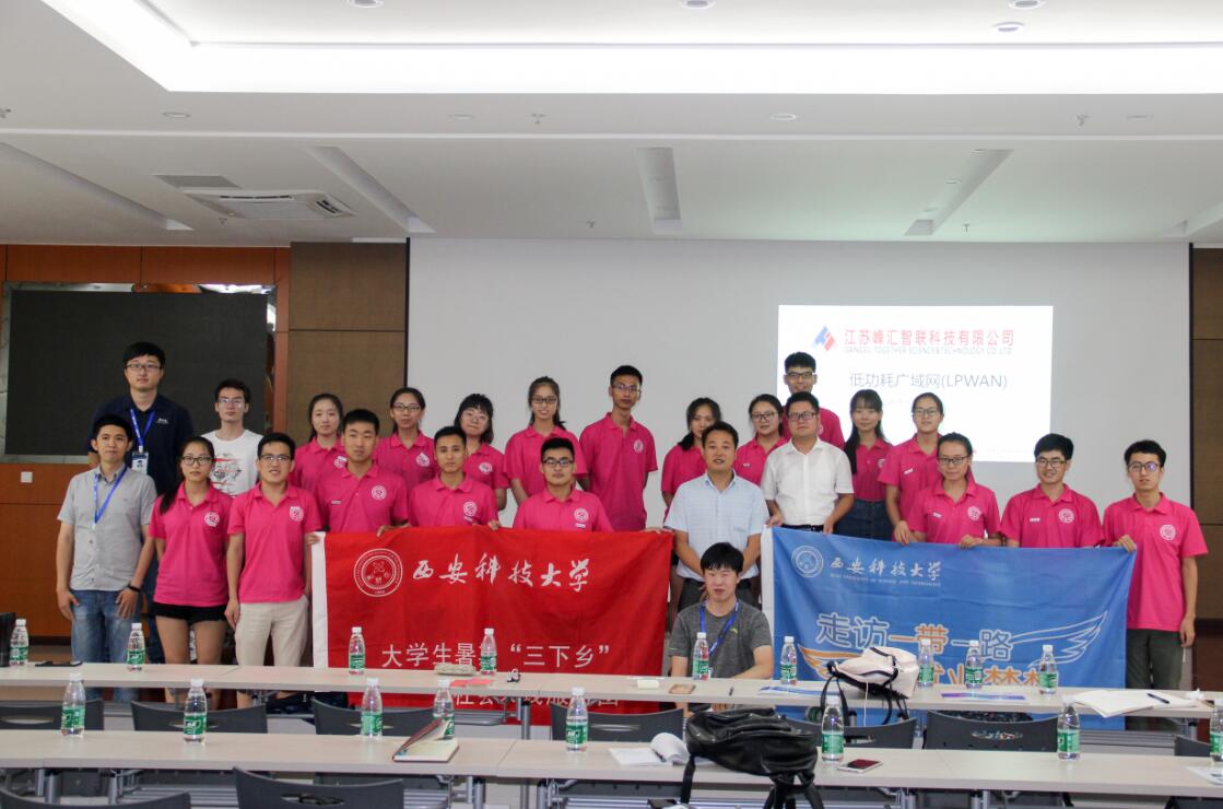 7月18日上午, 3044永利集团有限公司创业就业实践调研团一行来到了江苏峰汇智联科技有限公司进行参观交流,顾华经理为实践团成员们介绍了公司的发展历程、组织架构、企业核心文化等公司情况。当天下午,研发部李哲总监及软件、硬件相关工程师分别给实践团成员讲解了该公司的研发架构、项目开发流程以及LoRa技术,并通过太阳能道钉的设计实例向团队成员们详细剖析了项目的设计、开发和应用前景。通过对企业的参观调研与交流,实践团队成员对智能产品的研发、供应链管理、生产制造有了深刻的认识,同时为同学们步入社会进行就业创业打下了良好的基础。