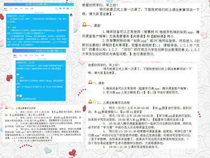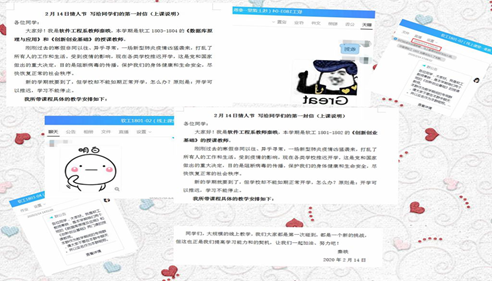 课程资源建好了,秦昳老师想到应尽快与员工建立关系做好课前沟通,于是建立课程QQ群,找到班长邀请同学们加入,逐一进行员工确认。在课程QQ群里给屏幕另一端的员工们写了“2月14日情人节给员工们的一封信(上课说明)”告知了同学们教学方案让他们安心在家学习。